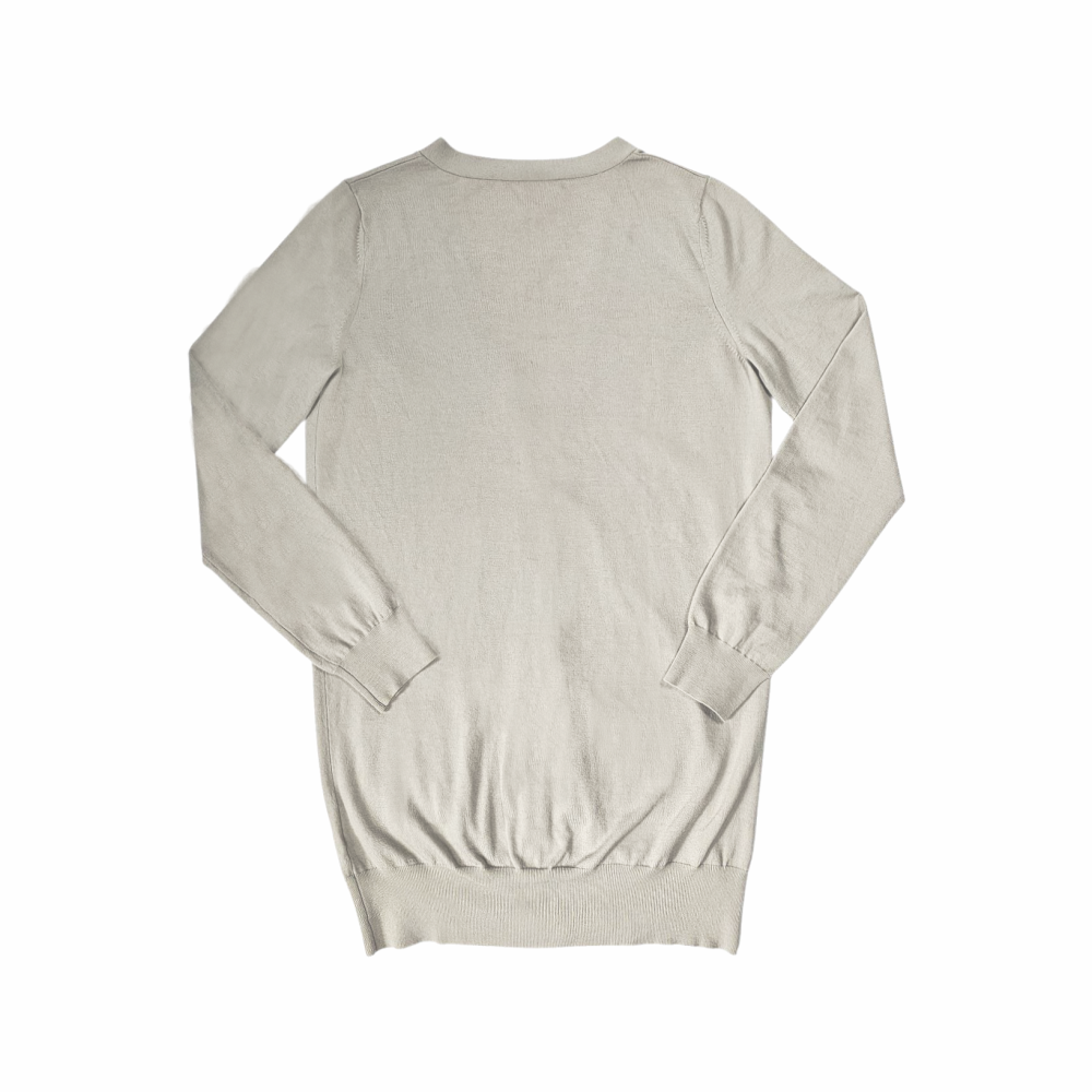 Elegant S’Max Mara wool blend cardigan in a refined beige hue. Crafted from 80% wool with nylon and elastane for comfort, this fine-knit piece reflects the effortless sophistication of Max Mara’s diffusion line S’Max Mara, designed for relaxed everyday luxury. Featuring a deep V-neckline, button-down front, and two discreet pockets, it’s a versatile wardrobe essential for layering across seasons.